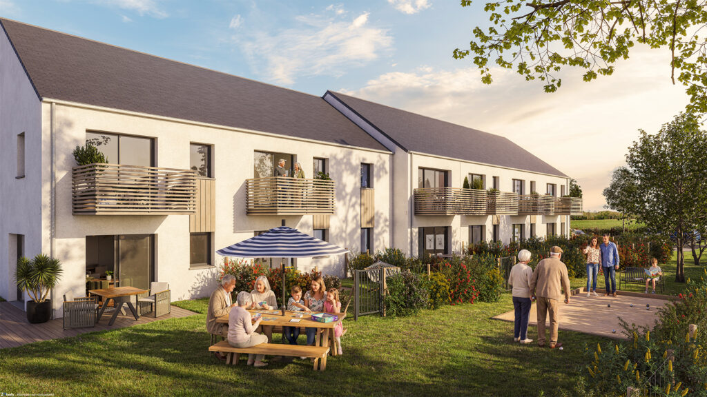 Le mot de l’architecte : « Pour qu’une résidence devienne un véritable lieu de vie, elle doit être pensée en harmonie avec les besoins de ses habitants et favoriser le partage, la rencontre et le vivre-ensemble. Elle s’installe dans un contexte urbain de proximité, proche du centre-bourg, là où les chemins se croisent et où naissent naturellement les liens entre les habitants. » Bernard Menguy (Menguy Architectes)